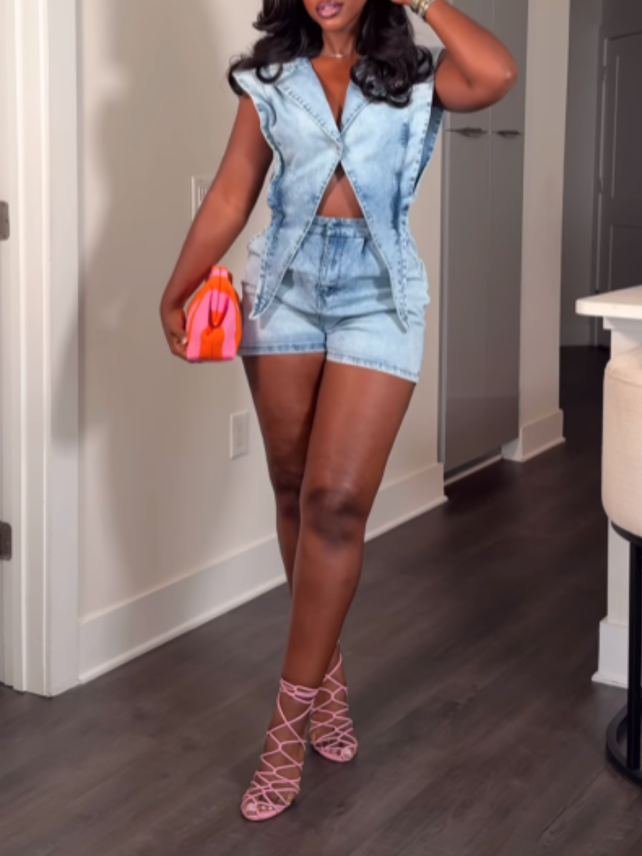 Casual Triangle Design Denim-body Shorts