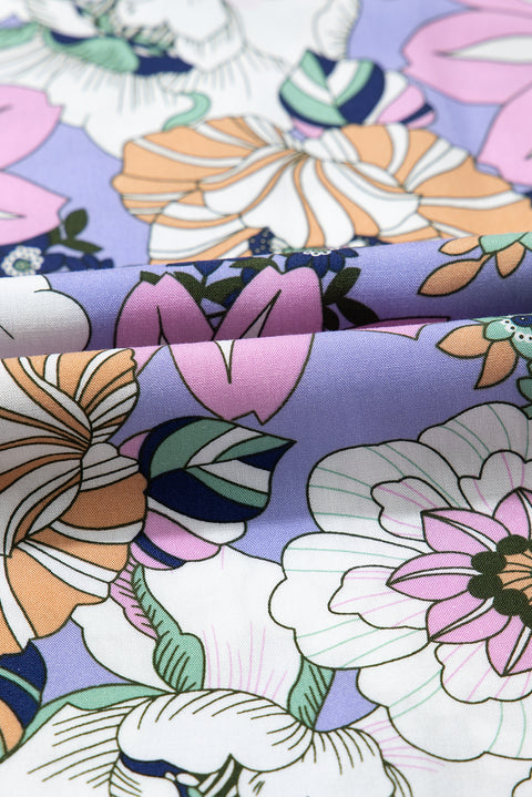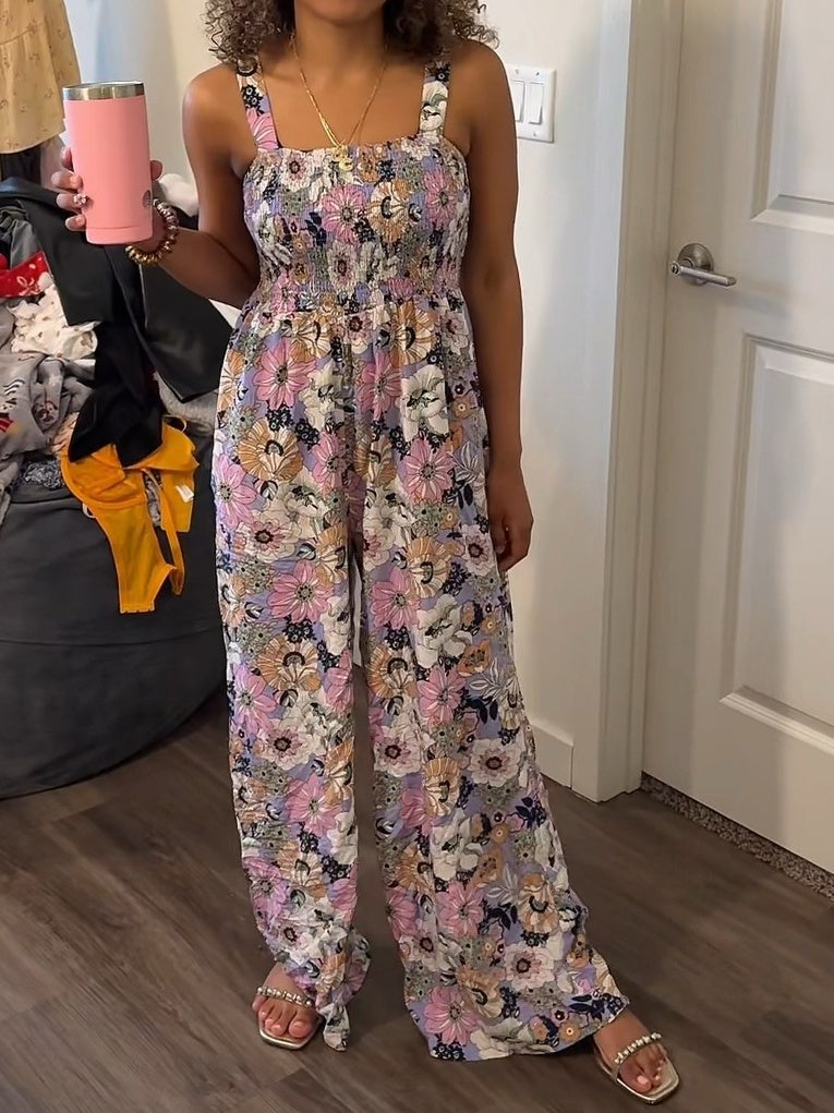Floral Print Smocked High Waist Square Neck Jumpsuit