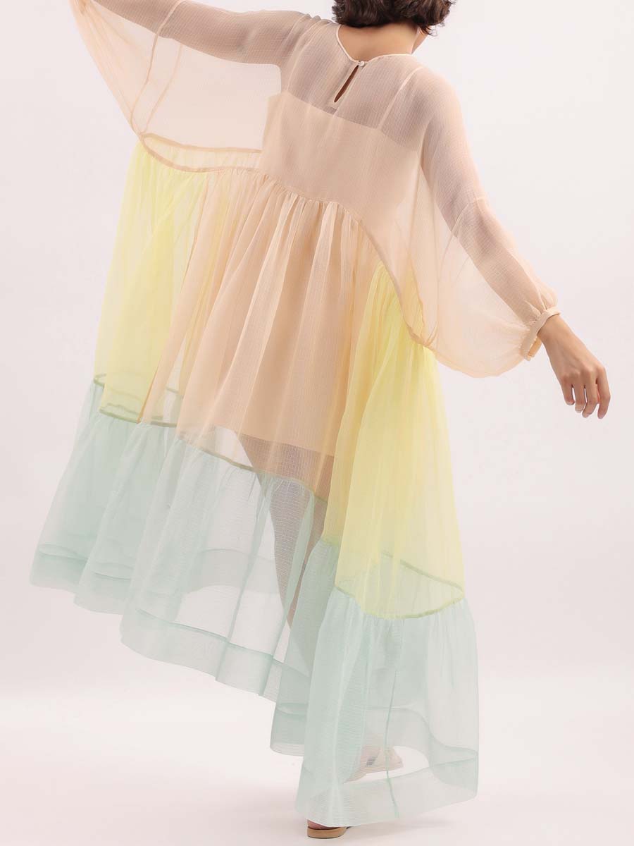 Loose Color Block See-through Dress