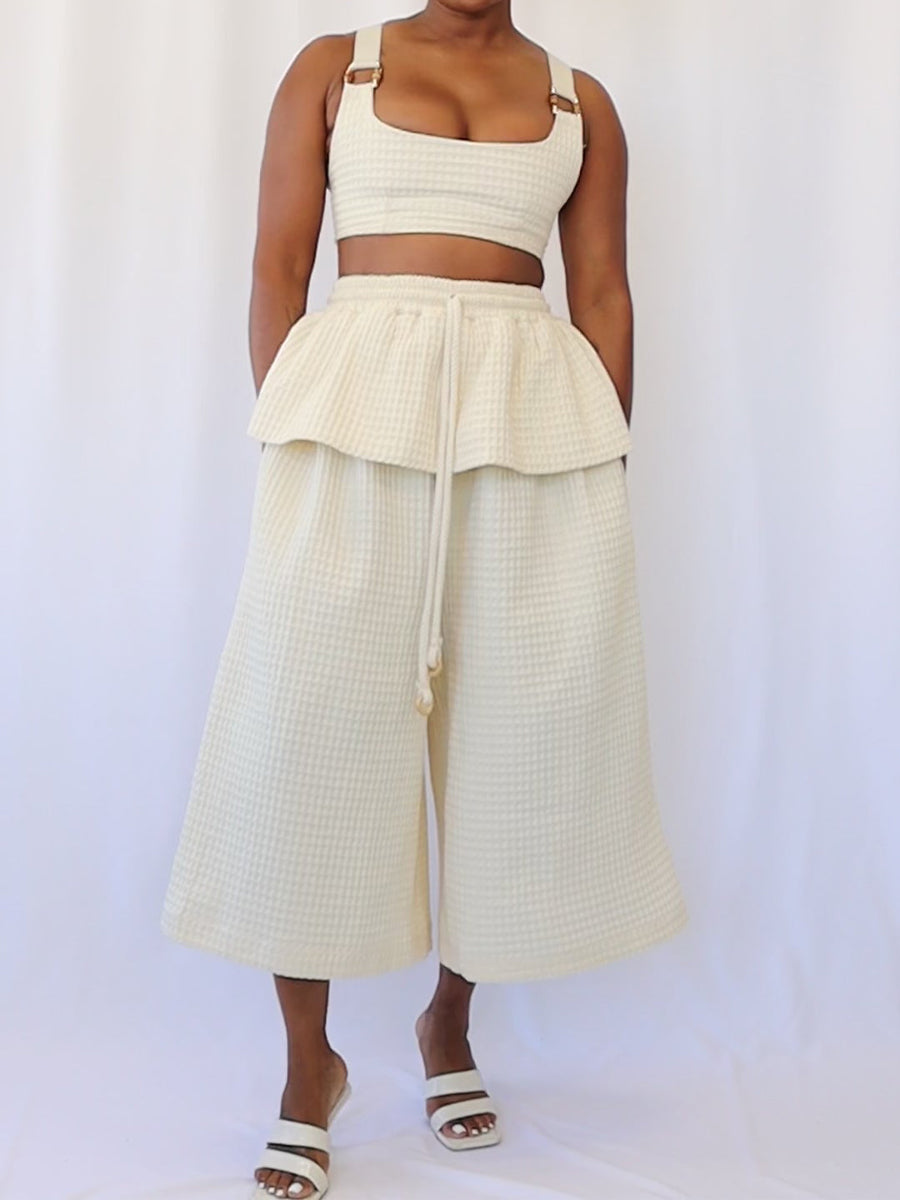 Breezy, elegant, and made for golden hour getaways — the Peplum Waist Two Pieces Set brings vacation-ready ease with a polished twist. Crafted in a textured cream fabric, this two pieces sets silhouette flows effortlessly while offering all-day comfort.
