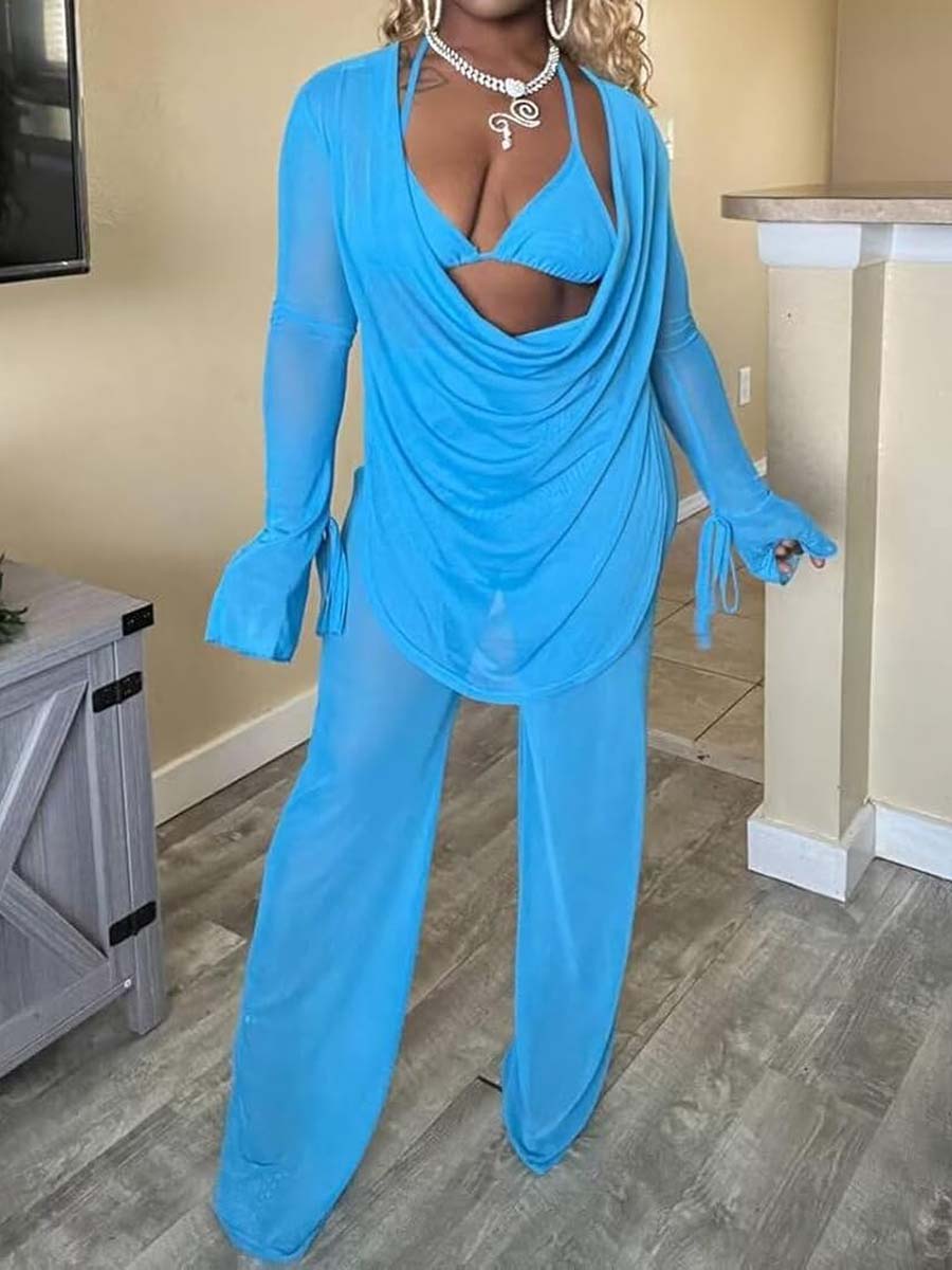 Material:95% Polyester + 5% Spandex The fabric of sexy 3 piece cover-up sets is lightweight, breathable and skin-friendly, with great stretch.