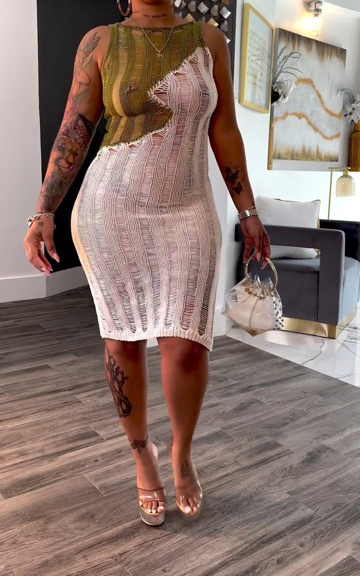 Sheer Knit Colorblock Maxi Dress