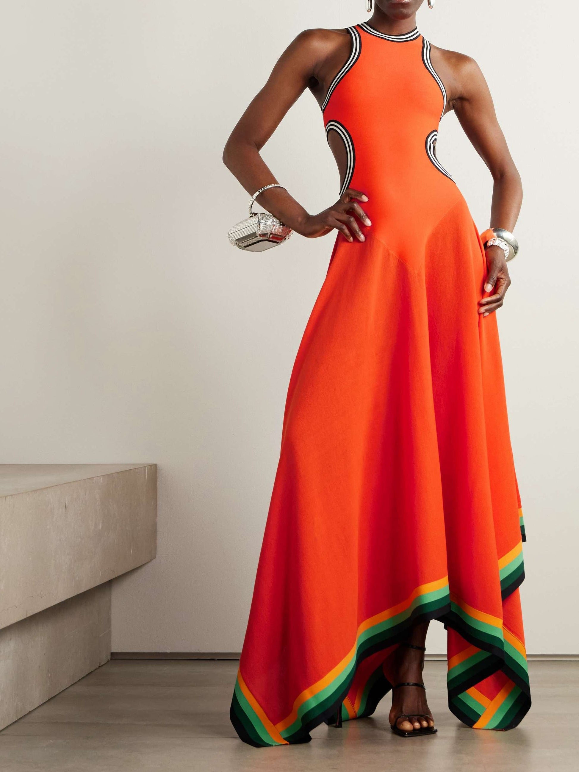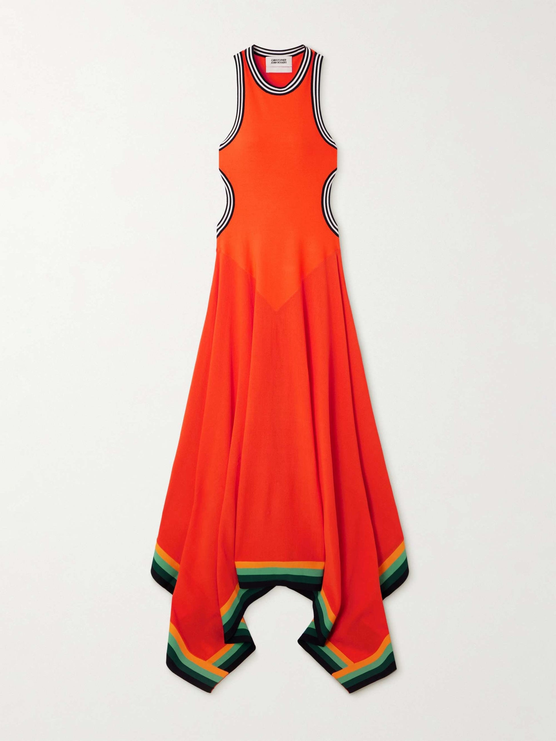 Striped Cutout Handkerchief-Hem Maxi Tank Dress
